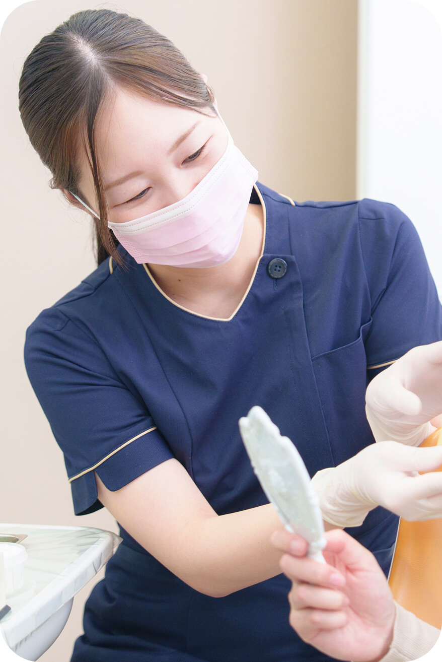 治療の流れや次に行う処置をわかりやすく伝えると同時に、患者さまの希望や思いにも耳を傾けます。説明と対話を大切にし、安心して治療を受けていただけるよう心がけています。