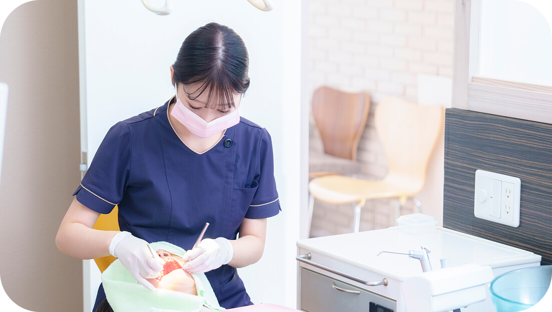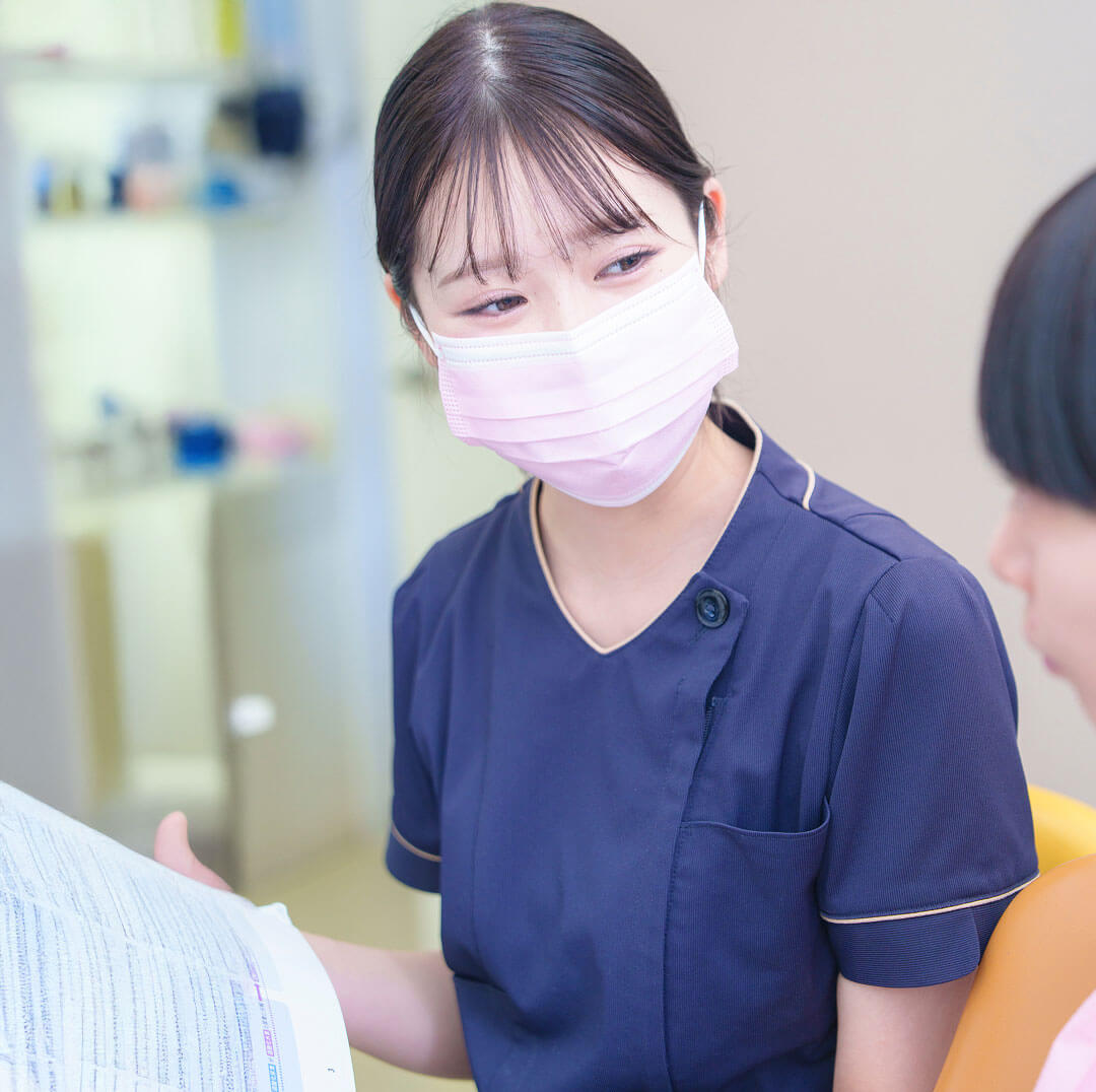 治療後のメンテナンスを中心に、患者さま一人ひとりの健康をサポートします。信頼関係を築きながら長く寄り添えるのが特徴です。また、歯周治療やホワイトニング、生活習慣のアドバイスなど、予防のプロとして幅広い知識と技術を身につけていけます。