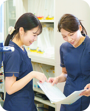 患者様に安心して通っていただけるように、笑顔と丁寧な対応を心がけています。